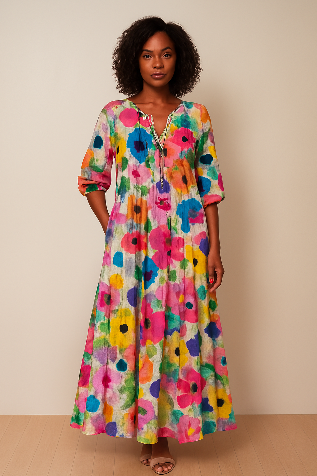 Introducing the Trishia – Vibrant Bloom Dress, a radiant expression of color and ease. Bursting with painterly floral prints and flowing charm, this dress captures the spirit of summer strolls and sunlit getaways. Designed to turn heads while keeping you feeling light and free, it's your new wardrobe favorite for effortless elegance.